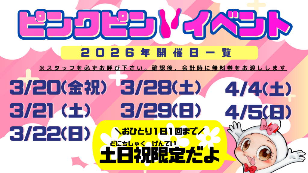 『ピンクピン』終日開催🚩